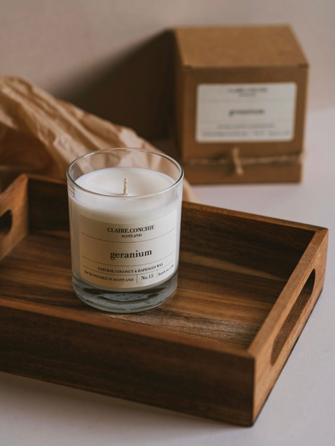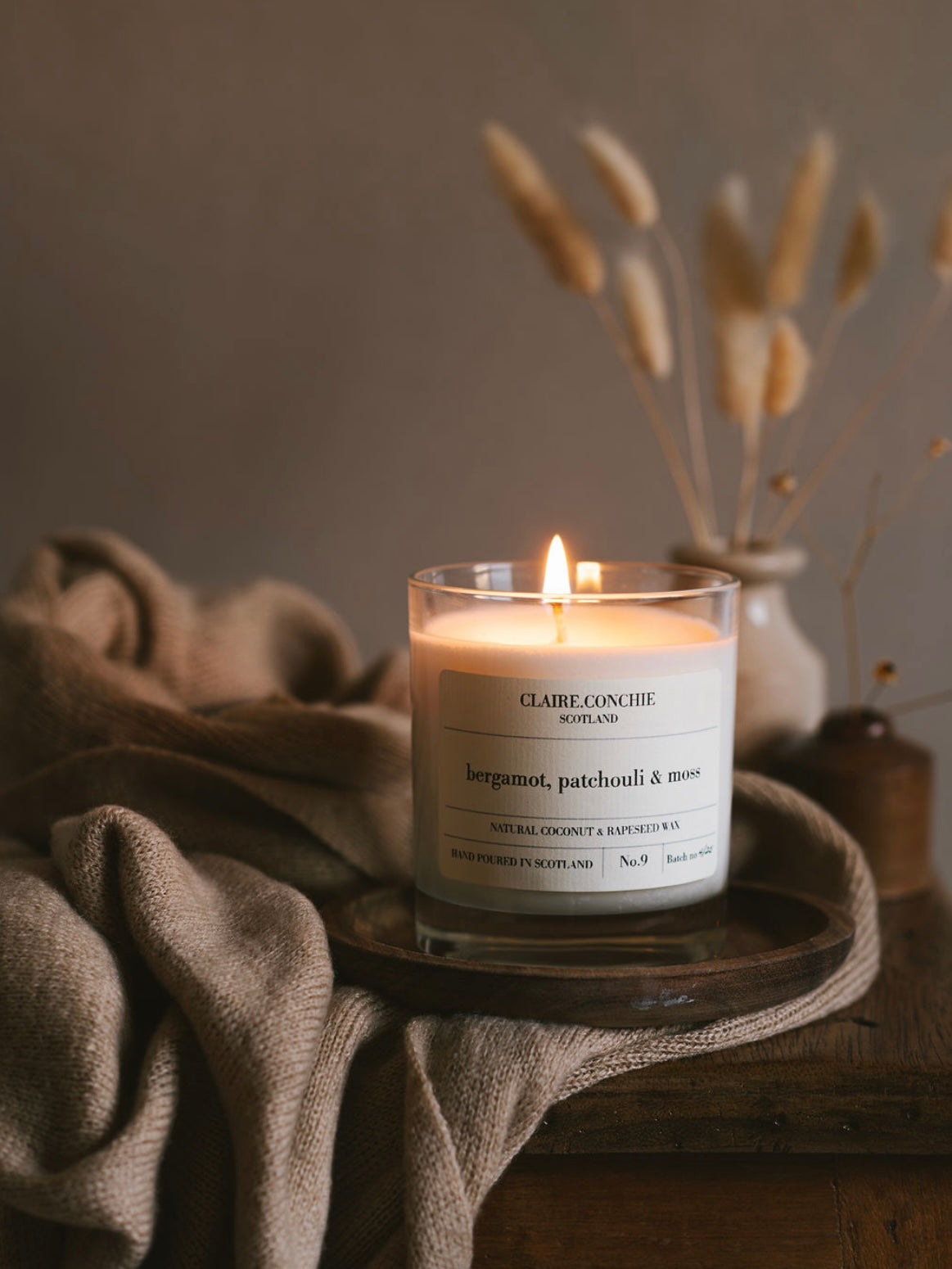 My candles are hand poured in Scotland and are made with a natural coconut and rapeseed wax blend. This means they are eco-friendly, clean burning and do not contain soy or paraffin wax. The wax is completely natural and is vegan friendly, cruelty free and paraben free. Each candle will burn for around 40-45 hours.