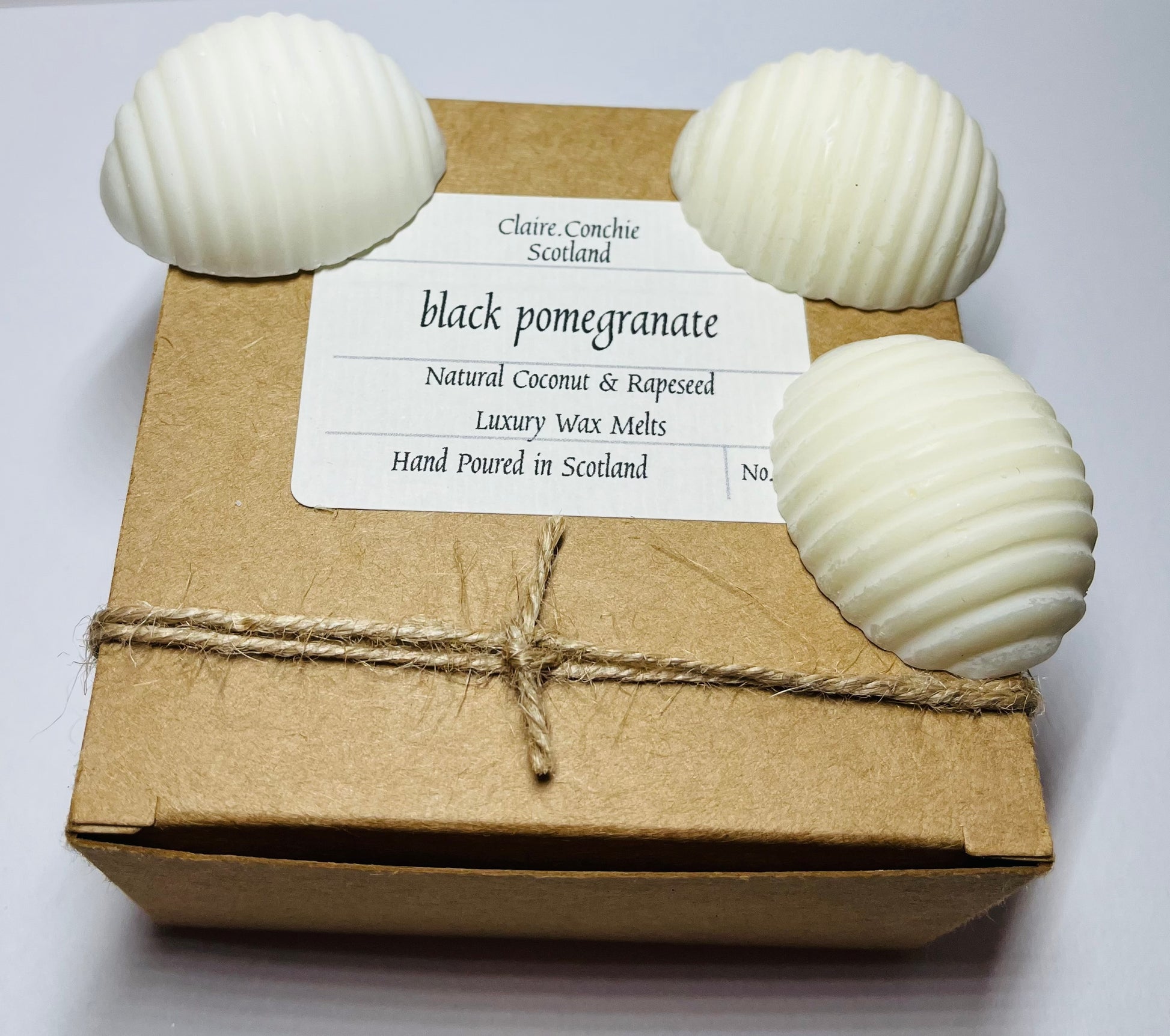 These Black Pomegranate wax melts are made using the finest quality fragrance oils to produce a luxurious and rich scent. Top notes of juicy plum, pomegranate and fresh roses perfectly compliment a heart of patchouli, cedarwood, violet leaf and spices, all coming to rest on a musky base of amber, vanilla and leather.