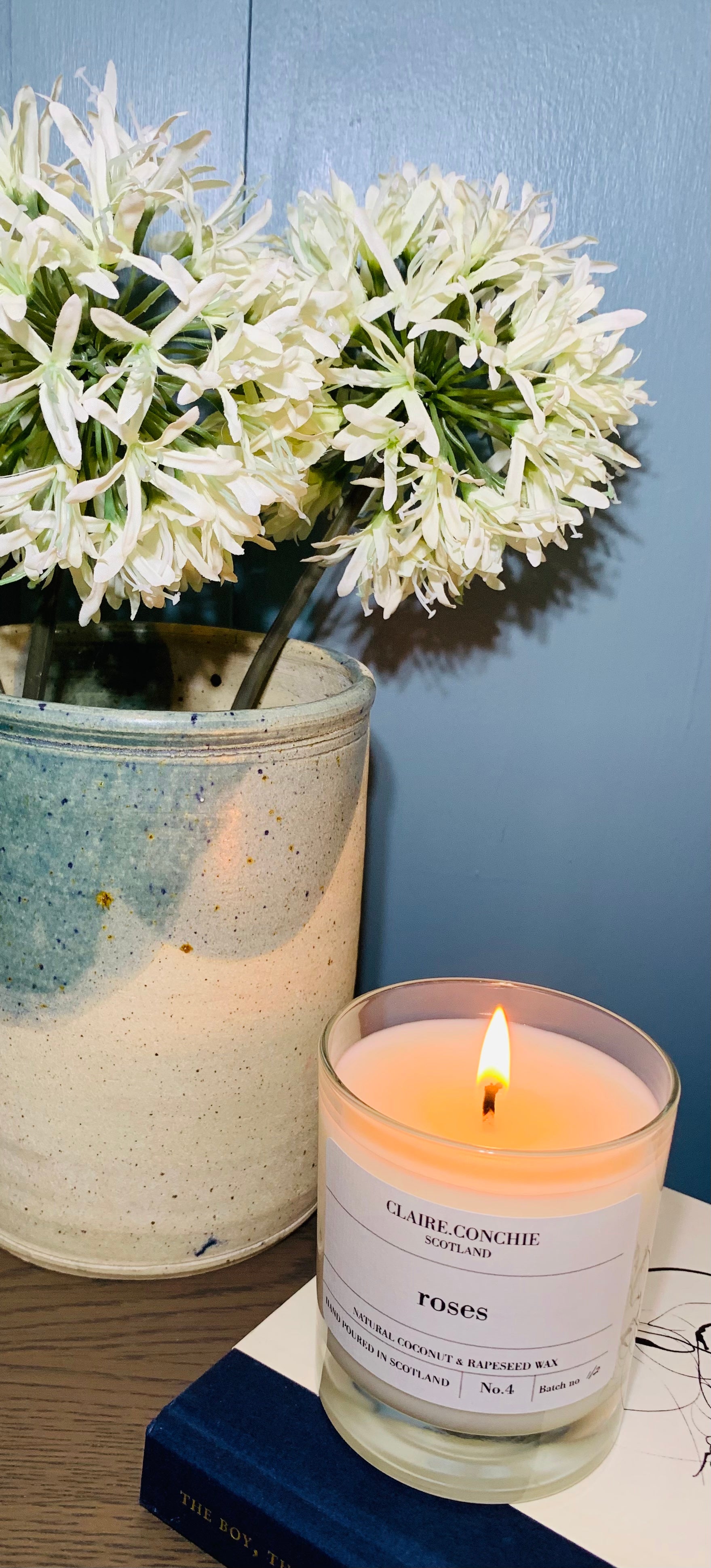 My Roses candles are made using the finest quality fragrance oils. This is a beautiful scent reminiscent of a freshly picked bouquet of roses in full bloom with nuances of geranium and violet, all wrapped in a gentle woody base.