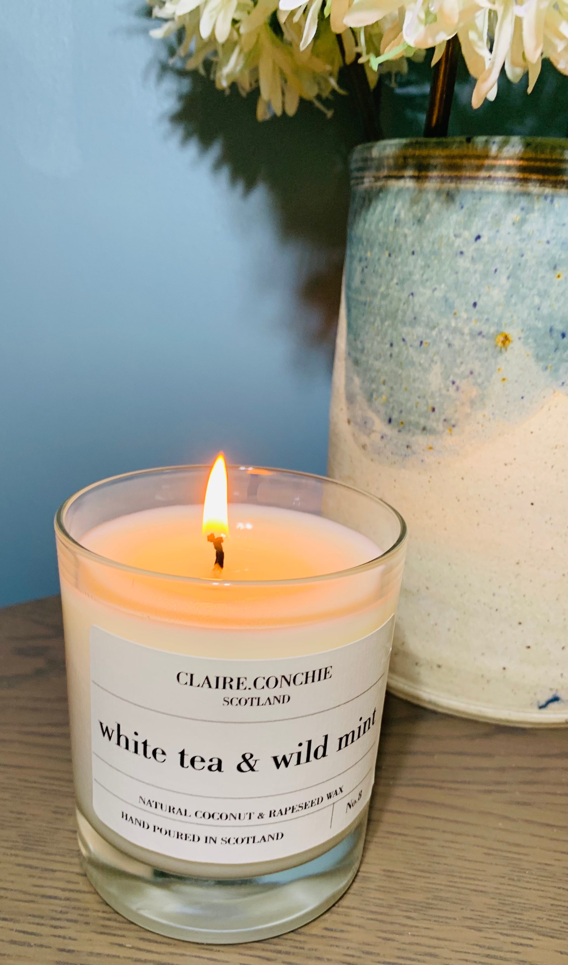My White Tea and Wild Mint candles are made using the finest quality fragrance oils. This is a wonderfully fresh fragrance. With fresh crushed garden mint infused with a hint of white tea. Simply stunning.
